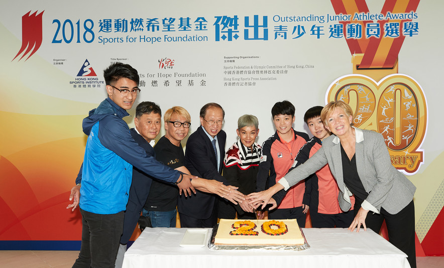 Organised by the Hong Kong Sports Institute (HKSI), supported by the Sports Federation & Olympic Committee of Hong Kong, China (SF&OC) and the Hong Kong Sports Press Association (HKSPA), the Sports for Hope Foundation (SFHF) Outstanding Junior Athlete Awards celebrates its 20th anniversary this year and the presentation ceremony for 1st quarter of 2018 was held at the HKSI today. A total of 8 junior athletes were presented the Award for their excellent performance and a lighting ceremony was staged to mark the beginning of the 2018 awards.